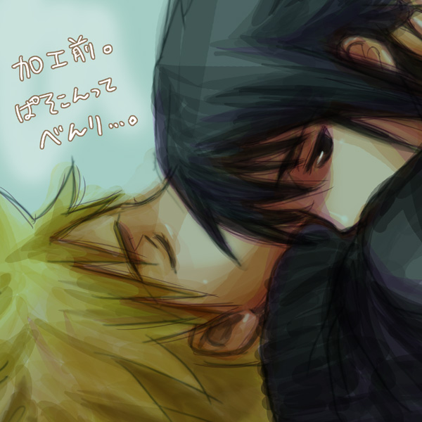 いつも攻がちびっこというパターンばかりなので、一枚目の投稿は大×小にしてみました。何が気に入らないのか全身で抗議するサスケェ…オムツの替え方が悪かったのかも知れません。