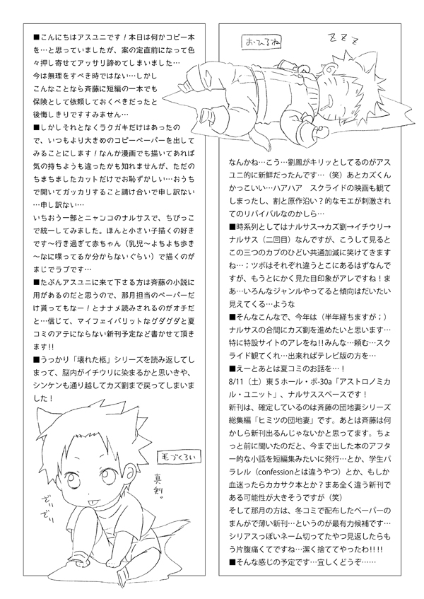 ◆サイト改装に伴い、【推定有罪】さいとう勇(別名義【アストロノミカル・ユニット】斉藤ヨネ)の作品は切り離しました。今まで本館ギャラリーに収納されていたさいとうのSSは「推定有罪web」へ順次掲載予定です。