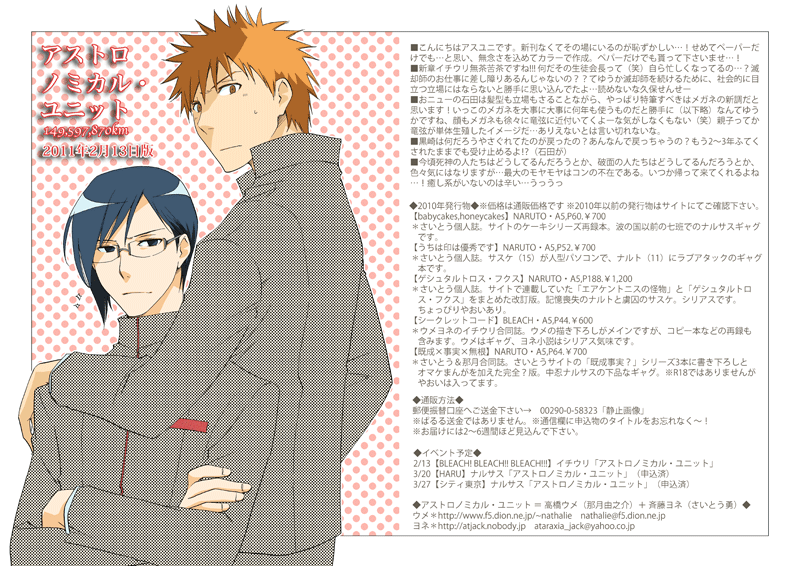 61:リ ヴァイ兵長(進 撃の巨 人) 62:カズマ&劉鳳 63:ナルトおたおめ 64:ナルサスはろいーん! 65:メリクリだってばよサスケェ!!! 66:2013年賀ナルサス 67:ジェ ノス(ワンパン マン) 68:ジェ ノス再び