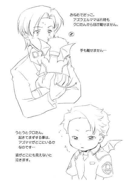 ■オルシャニにしちゃうとクロトが余っちゃってかわいそう…。つって、急遽アズクロを考えてみた。アズさん受だと思ってるのに(笑)。まあいいか。クロトが大きくなったらきっと攻めてくれるよ!