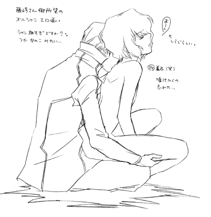 ■うわあ~初めてまともにオルシャニ(笑)。ん?でもオルガ、誰のジャケット着てるの…;ウッカリ袖描いちゃった…(笑)。